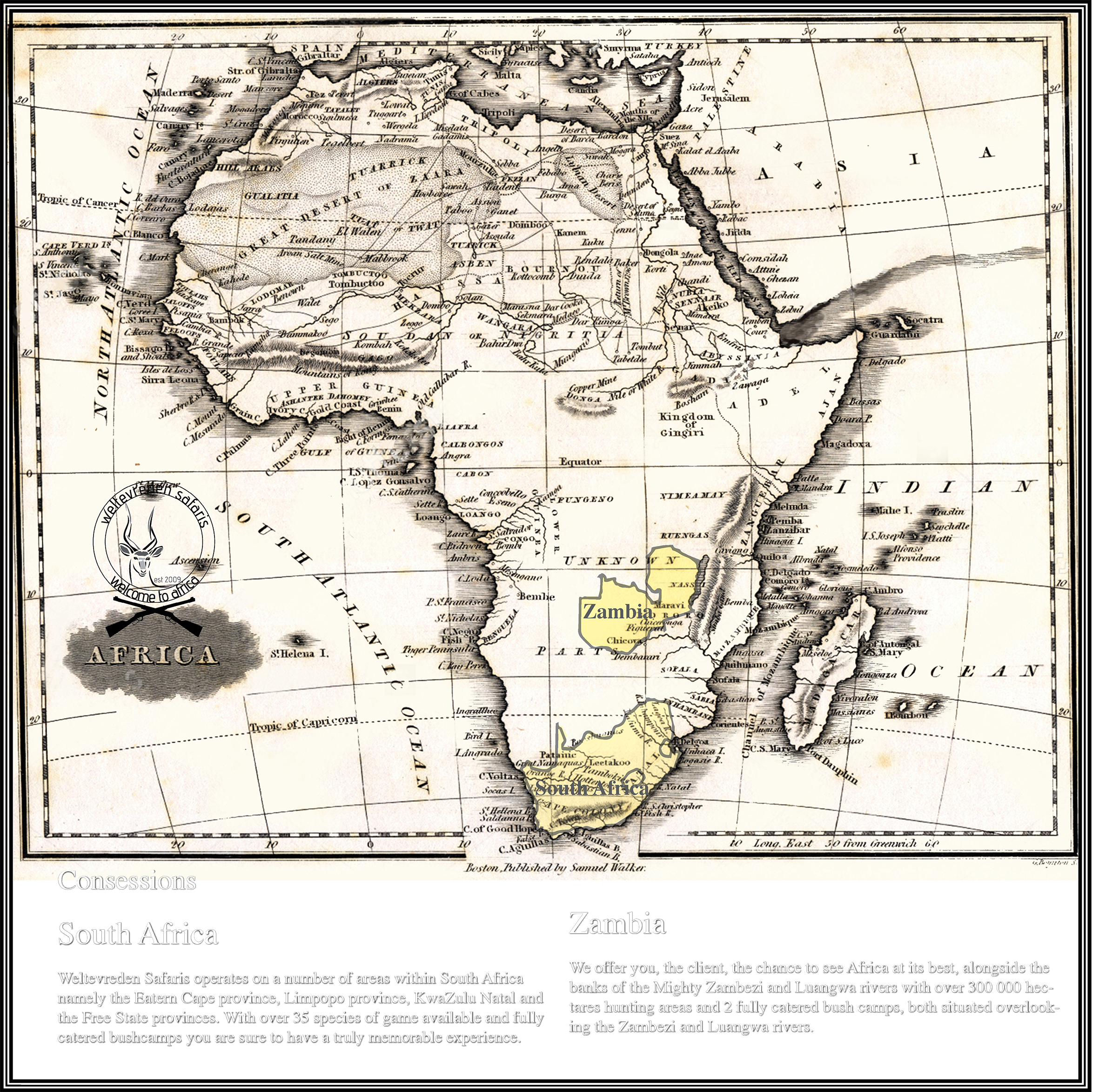 We offer you, the client, the chance to see Africa at its best, alongside the banks of the Mighty Zambezi and Luangwa rivers with over 300 000 hectares hunting areas and 2 fully catered bush camps, both situated overlooking the Zambezi and Luangwa rivers.